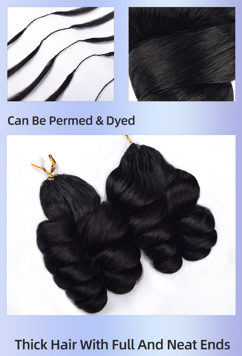 Advantage: no smell, tangle free, natural and bright glow,smooth and soft waves,more stable, easy to install,please take care of your hair as carefully as you do your hair, which can prolong your use time.